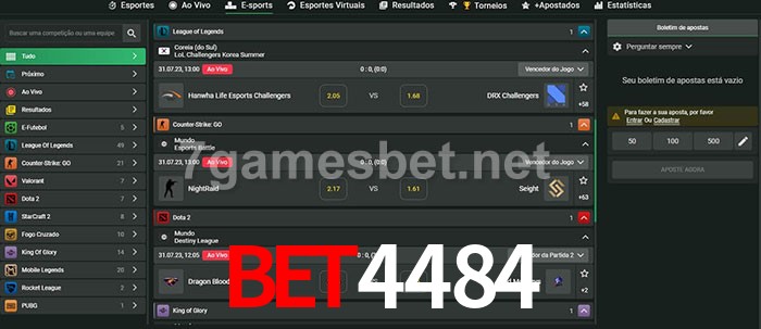O bet4484 oferece uma grande seleção de opções de apostas em e-sports com probabilidades competitivas